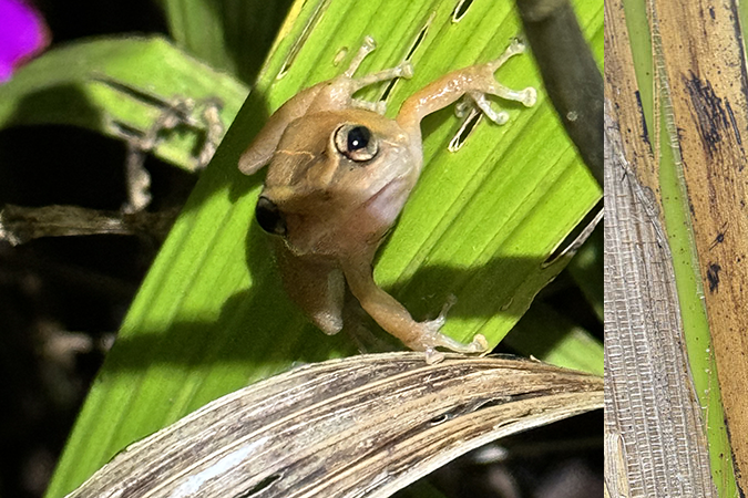 The coqui frog have become established and eradication efforts are no longer practical. The frogs are a major noise nuisance and also pose a threat to native eco-systems. Their diet includes insects and spiders and they compete with native birds and other endemic fauna. Since its detection in Hawai`i, significant efforts have been ongoing to prevent the spread of coqui to uninfected islands. Detection and control efforts of coqui in remote areas is difficult as they are heard mainly at night.